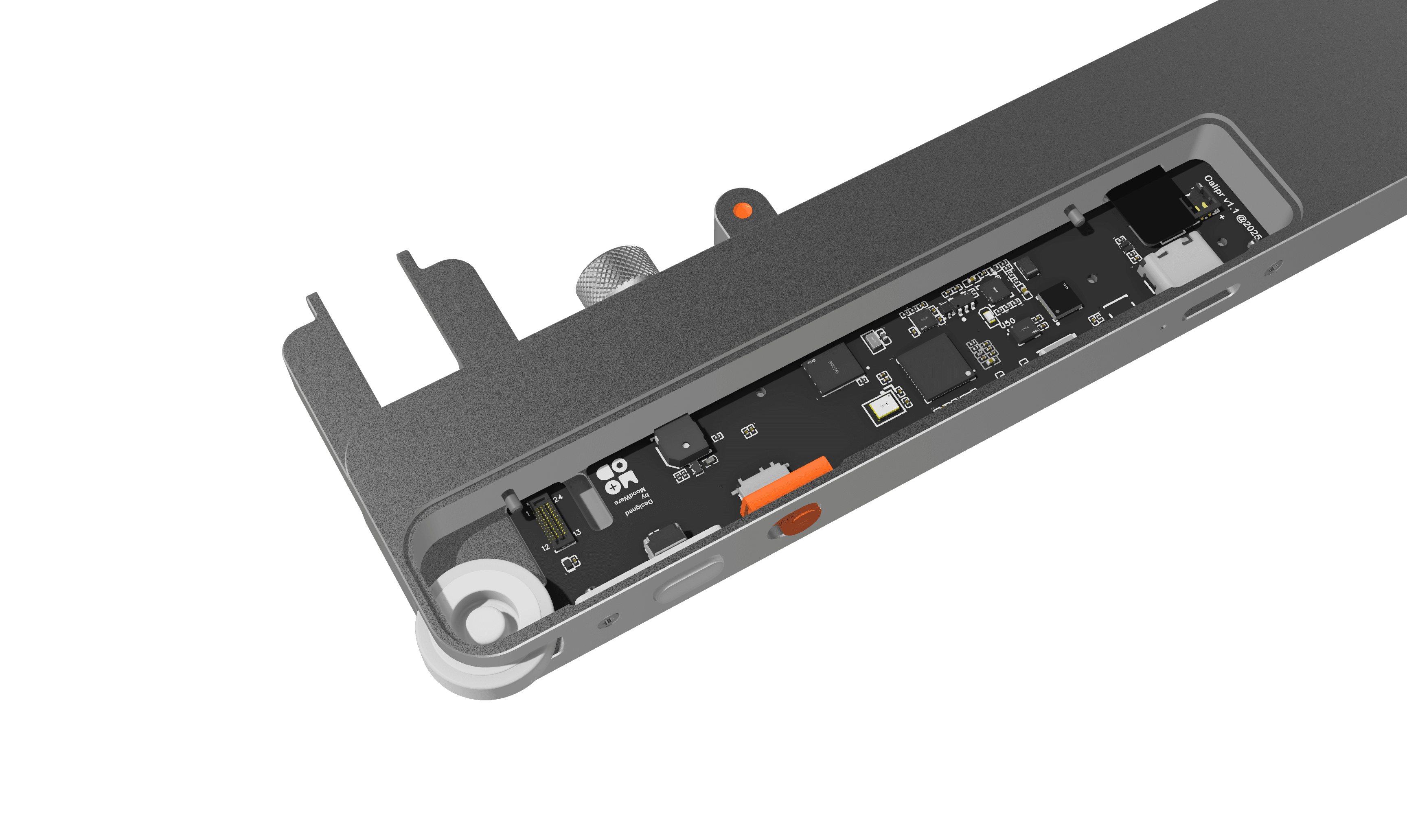 I worked with overseas contract manufacturers to build Calipr end to end, from CAD and schematics to finished parts. I released production ready files for the machined aluminum chassis and plastic components, including GD&T, tolerance stacks, surface finish and anodize specs, and DFM iterations based on fit and inspection results. In parallel, I managed PCB and flex requirements for the display and precision linear magnetic sensor.